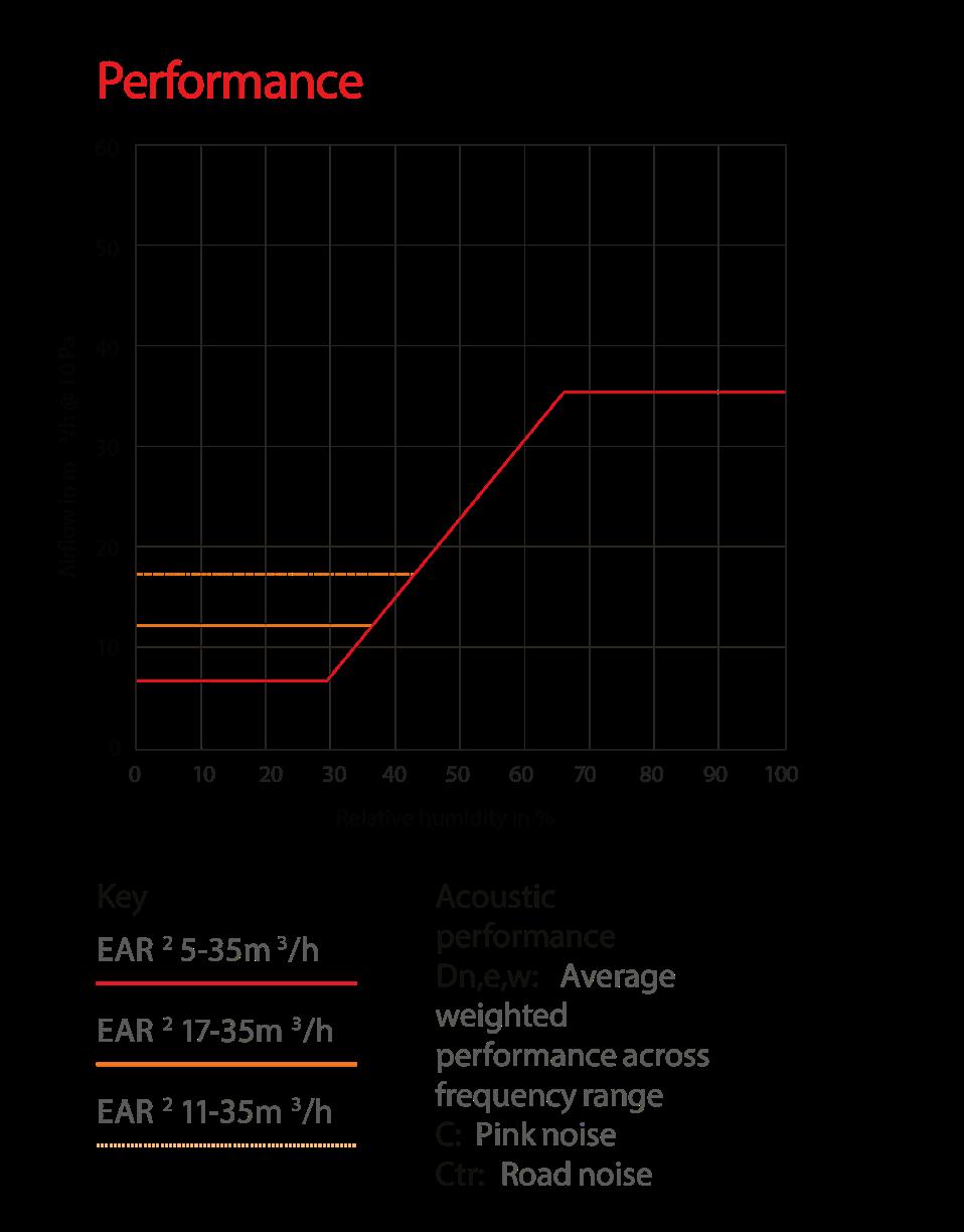 Achieves the best acoustic performance for window ventilators available within the UK – up to 45dB(A)