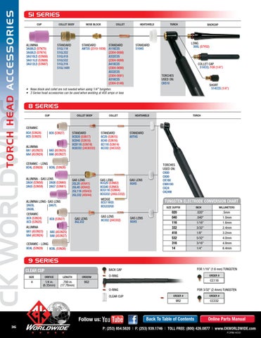 • Nose block and collet are not needed when using 1/4" tungsten. • 3 Series head accessories can be used when welding at 400 amps or less