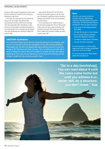 Dates Juliet also runs training courses and corporate training in assertiveness, negotiation and helps people working with relationships. The following Pesso Personal Development events are open to everyone: • 22nd January in Itton, Monmouthshire, South Wales • 28th and 29th January in Lewes, Sussex • 4th, 5th and 6th February residential course near Glastonbury, Somerset