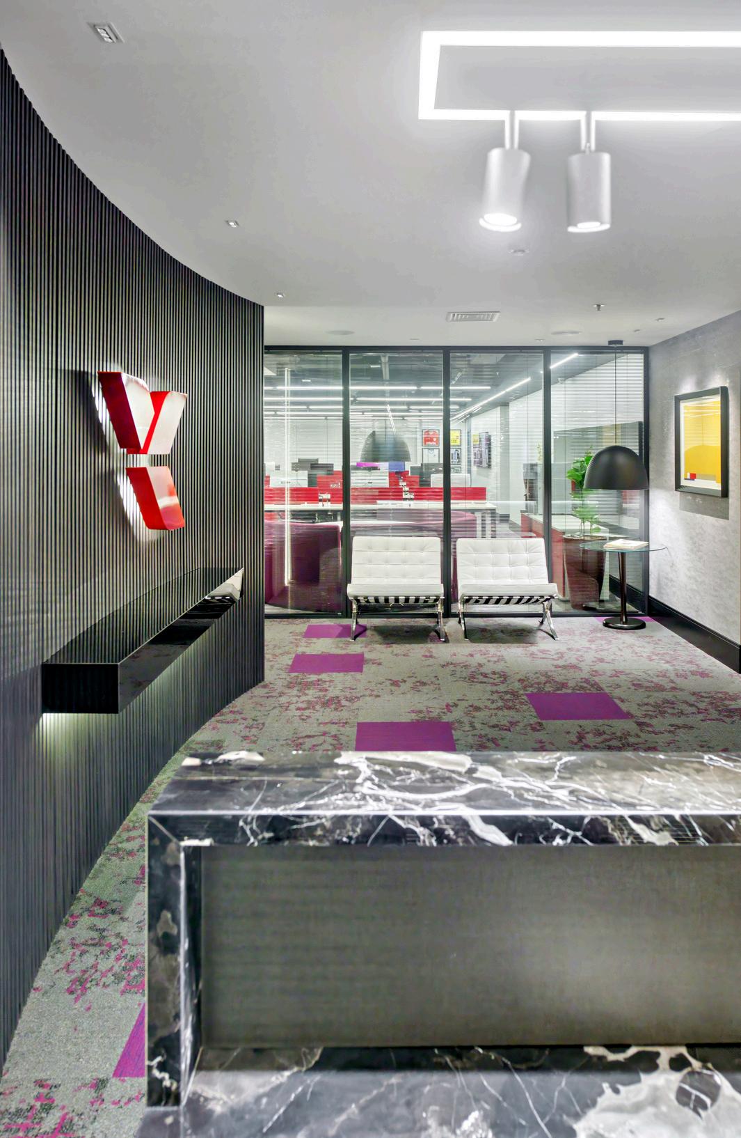 “ É possÍvel contemplar o Hall com móveis e painéis totalmente desenhados pelo escritório, em Mármore Nero Espanhol, marcenaria da Movelaria Barros, carpet em placa da Qualitá móveis para escritório, iluminação cênica da Light&Co, e poltronas Barcelona, do acervo dos clientes “
