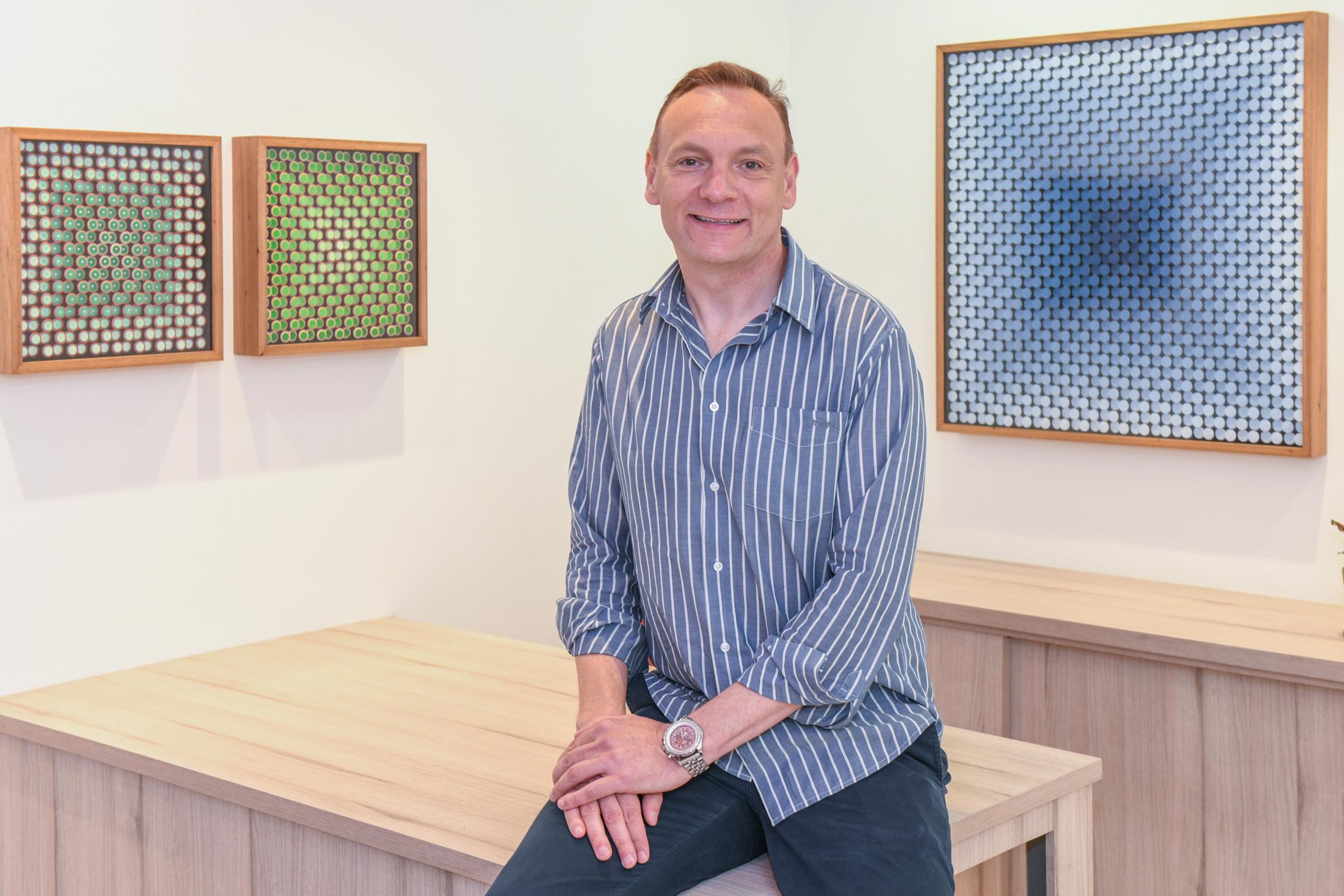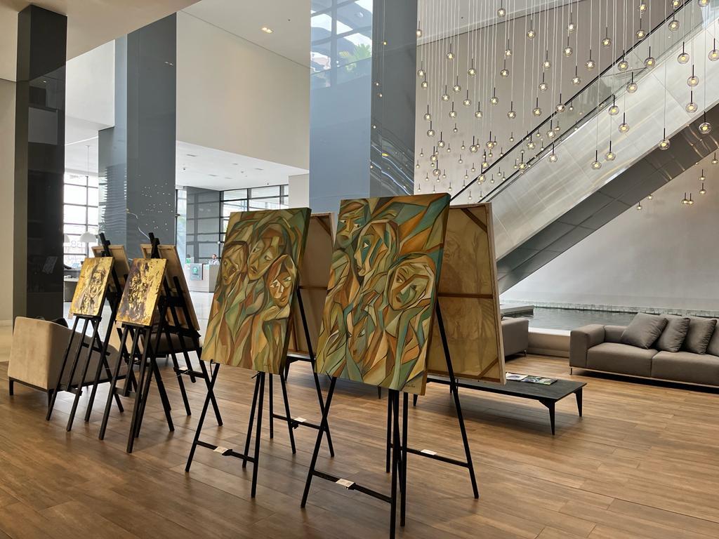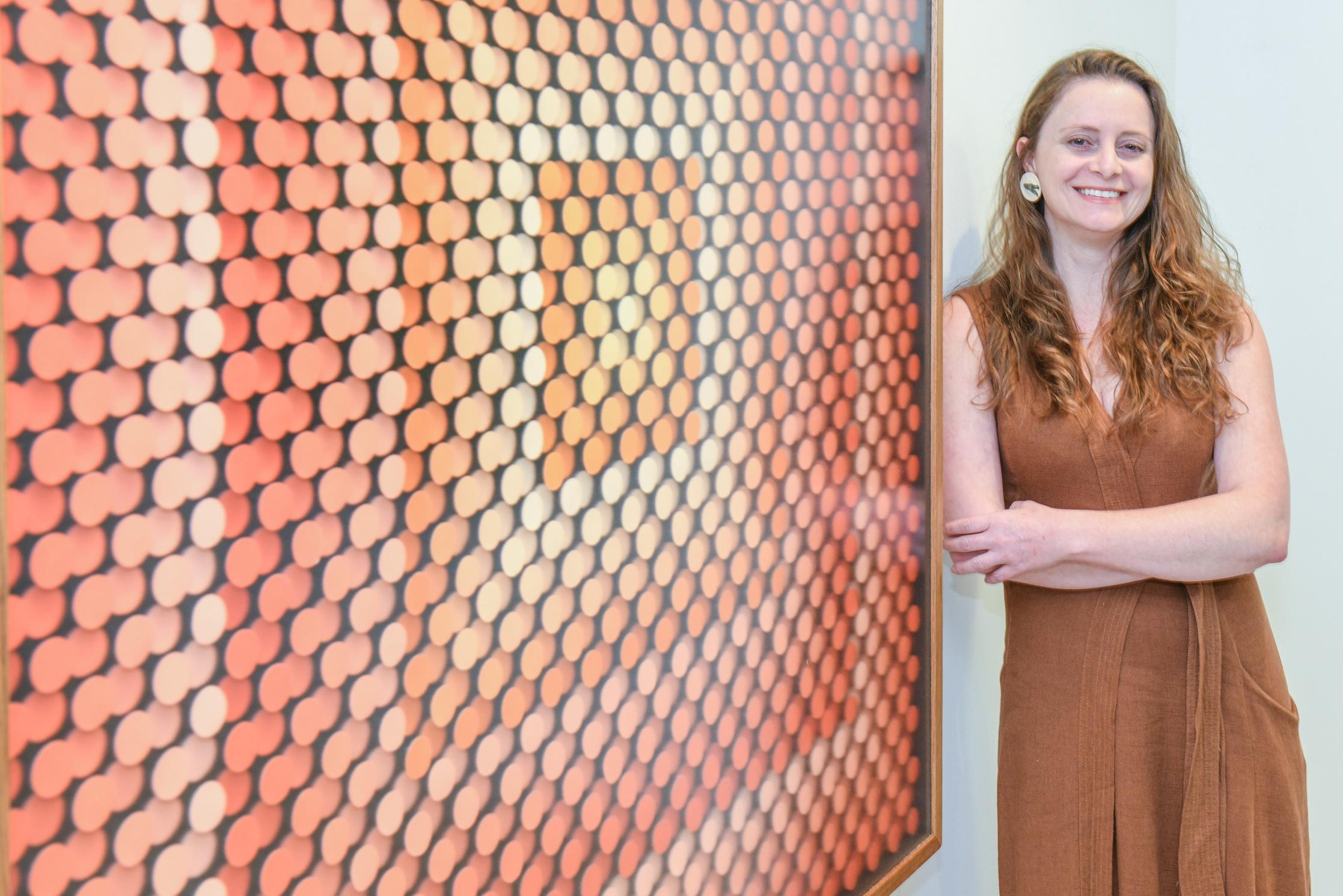 “Cadência” do artista visual Jean Araújo, que cria em suas obras um efeito de tridimensionalidade através do uso de cores que ele próprio produz e aplica sobre papel cartão, que a seguir recorta em pequenos círculos. Estes círculos, de enorme variação de cores, são aplicados sobre uma estrutura de pregos colocados sobre madeira em diferentes profundidades. Desta forma, o artista cria uma impressão de planos em degradê; mas ao nos aproximarmos, temos a sensação de tridimensionalidade e percebemos um efeito óptico que atrai e encanta.