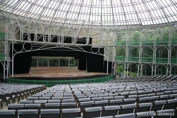 Ópera de Arame passarela (foto: iStock)Dentro da Ópera de Arame tem um auditório coberto por uma estrutura que permite a entrada de muita luz natural. O espaço interno também recebe peças das exposições que acontecem por lá. Já no subsolo, que fica abaixo da plateia, há um restaurante na beira do lago.