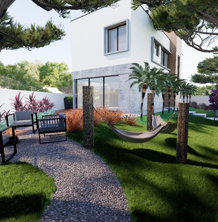 Este é um fator muito importante para determinar o estilo do jardim Observe sua casa, ela tem um estilo mais moderno, mais clássico, minimalista, rural, romântico? Normalmente as casas dizem muito de quem somos e facilita muito se o jardim ficar em harmonia com a arquitetura. Por exemplo, se sua casa tem uma fachada, detalhe, parede, porta ou algo que precisa ser destacado, não tem sentido colocar um tipo de vegetação que esconda este detalhe.
