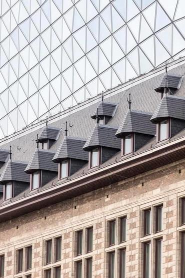 Mas a construção começou no final de 2011 e ainda está em andamento. Após a conclusão, o prédio terá capacidade para acomodar aproximadamente 500 funcionários. O projeto do edifício é composto por duas entidades: um antigo quartel de bombeiros e uma nova estrutura cristalina erguida acima do edifício retido Juntos, isso forma um marco maravilhoso no horizonte de Antuérpia com uma mistura arquitetônica de nova estrutura de vidro moderna suspensa sobre o histórico quartel de bombeiros.
