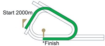 The track the horses are running on. The distance the horses will travel from start to finish during the race displayed in meters.