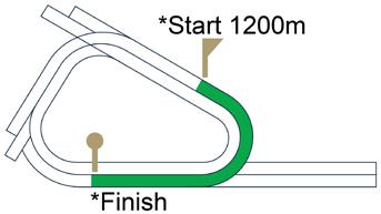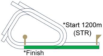 The track the horses are running on. The distance the horses will travel from start to finish during the race displayed in meters.