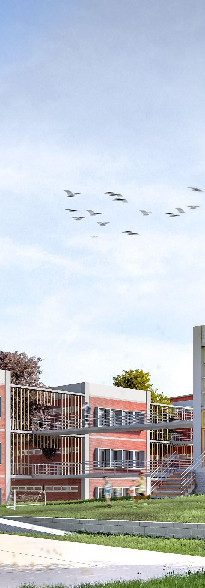 Creating punctures within the building to accomodate green space which reduces temperature and helps in child well being.
