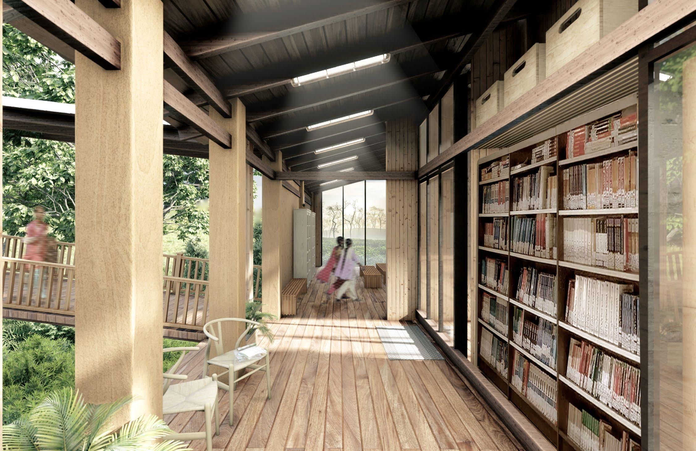 Inspired by Assam’s traditional architecture, with its sloping roofs and raised buildings, the library units are carefully arranged in ascending order. It symbolizes a journey of knowledge and personal growth. Along the way, there are peaceful courtyards that offer moments to rest and reflect, sparking curiosity.