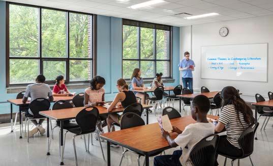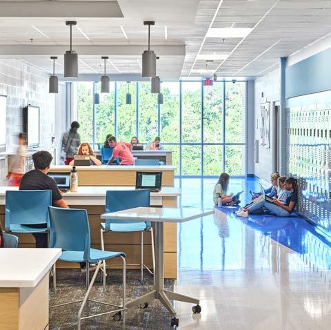 Facing rapid enrollment growth and a defined $88 million budget (inclusive of all site work), the district turned to RATIO to envision a new 1,000-student middle school that balances efficiency with inspiration. The charge to our design team was clear: create a future-ready learning environment that elevates the student experience without overextending resources. Our approach centered on thoughtful scale, smart systems, and high-impact design moves, prioritizing flexibility, daylight, and shared learning zones that maximize every square foot. Some of our most effective costcutting decisions came from careful spatial planning: stacking program areas to reduce the overall footprint and circulation, minimizing the building envelope, and eliminating unnecessary stairwells.