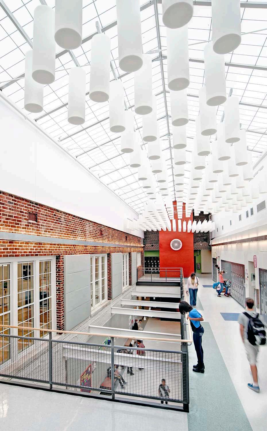 RATIO completed a 104,000 SF renovation plus an 18,000 SF addition, infusing 21st-century technology into the dated classrooms and providing for flexible learning environments. The new design encourages healthy learning environments for students through lighting and thermal comfort in addition to providing a safer campus with the separation of pedestrian and vehicular zones / traffic.