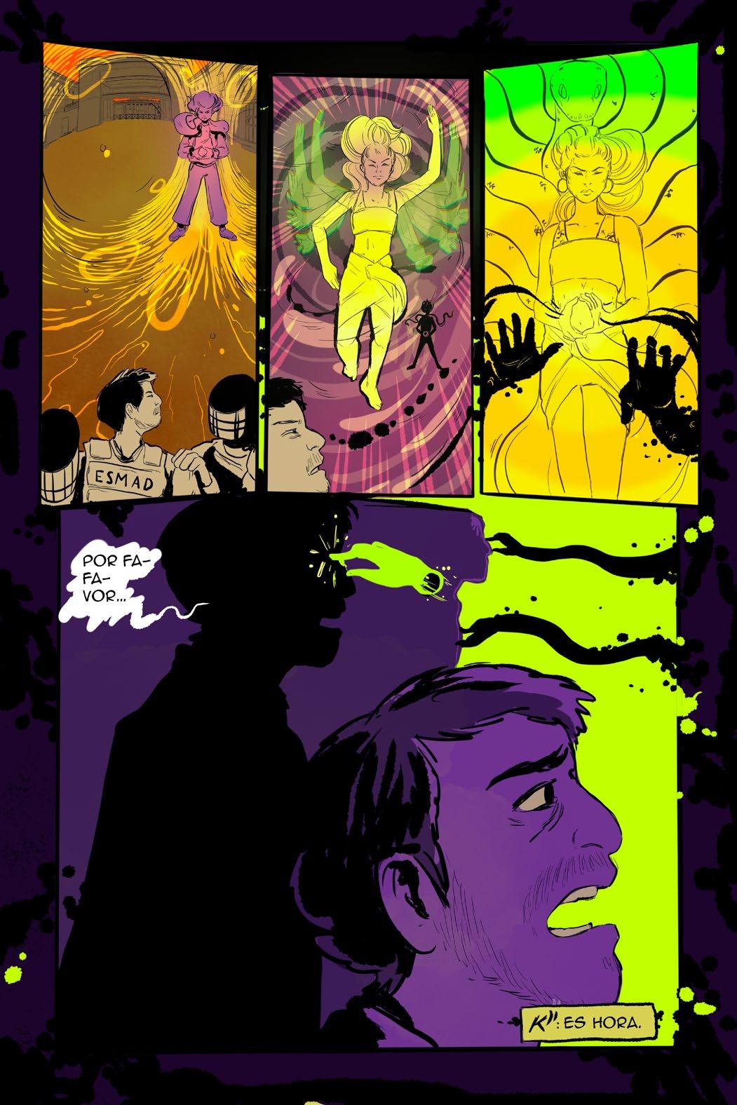 Kaia Draft. Coloring is still being worked on.“KAIA: despertar en lo profundo” es la mística encarnación de Natalia Ponce de León - sobreviviente de un brutal ataque de ácido - quién logró tornar esta tragedia en un movimiento nacional, en pro de combatir la violencia de género y la percepción de las mujeres en Colombia. Después del ataque, Natalia se sumerge en un constante abismo de dolor y depresión que la lleva en una travesía al reino espiritual, el cual está habitado por una gigantesca serpiente con el poder de sanar o destruir. Finalmente, nuestra protagonista vuelve de este viaje de introspección, convertida en Kaia, defensora de los vulnerables y protectora de los inocentes, quienes han sido traumatizado por la injusticia y la violencia en la Colombia moderna. Así pues, la historia de Natalia es narrada en un cómic fantástico de realidad aumentada, creado por Melanconnie, Laura Velandia y Faebian Ceruleo.