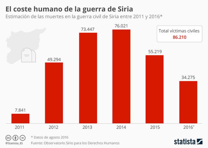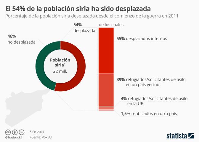 Los desplazados por la guerra en Siria (2016, November 3) Statista Daily Data; Statista https://es.statista.com/grafico/6546/los-desplazados-por-la-guerra-en-siria/ Guerras y violencia (2018) Www msf es https://www msf es/contexto/guerras-violencia Eduardo González Calleja, & Severiano Rojo Hernández (2020) Las guerras civiles, reflexiones sobre los conflictos fratricidas de la época. https://journals.openedition.org/amnis/2477