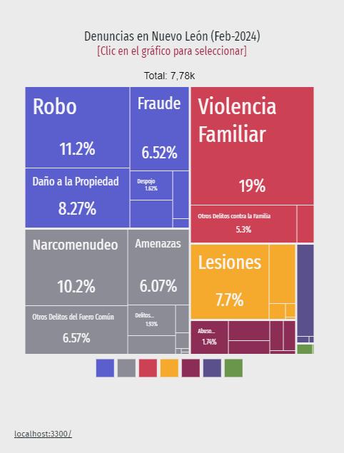 números de Monterrey son mucho mas grandes, ya que para Febrero de 2024 registraron 1955 denuncias por Violencia Familiar.