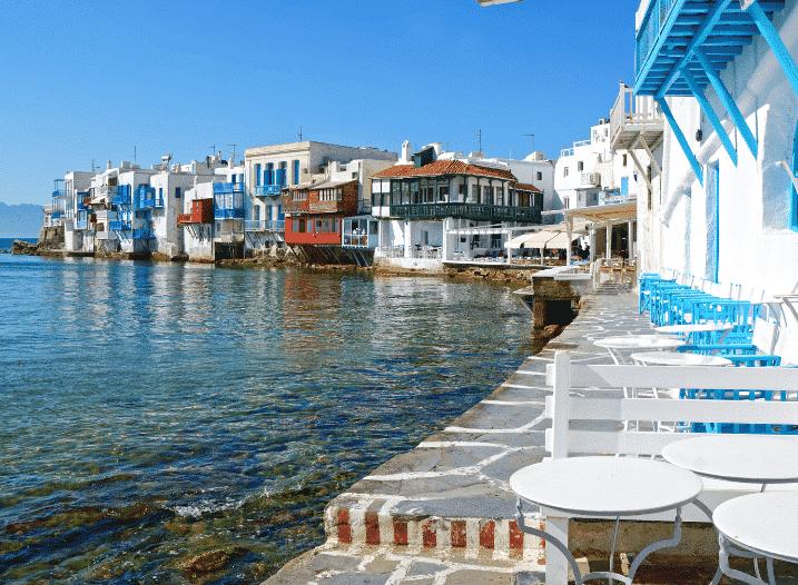 Del azul del mar Egeo emergen las Cícladas, las islas griegas como todos las imaginamos: maravillosas playas y típicas casas blancas y azules.