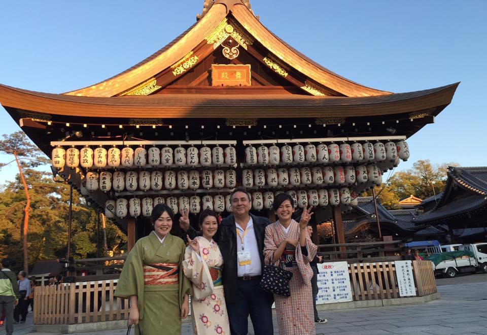 En su búsqueda nos introdujimos en las callejuealas estrechas y empedradas del Distrito Gion, repletas de edificios tradicionales de madera, decorados con farolitos chochin, con todo tipo de amuletos como las estatuas shoki en los tejados, también con los chimaki, pasteles de arroz envueltos en hojas de bambú que cuelgan en las puertas, caminamos por el puente de madera Tatsumi, pasando por exclusivos restaurantes y boutiques japonesas de la calle Hanami Koji, en el camino encontramos muchas casas de té (Ochaya) y tiendas tradicionales de dulces, maquillaje y textiles, aunque nos dieron referencias de como llegar las casas de Geishas (Okiya) en realidad se nos hizo difícil encontrarlas, conocerlas de cuerpo y alma, disfrutarlas en su esencia. Anochecía, había llegado nuestra hora de dejar tan apasionante pendiente, para nuestro próximo viaje al “País del Sol Naciente”.