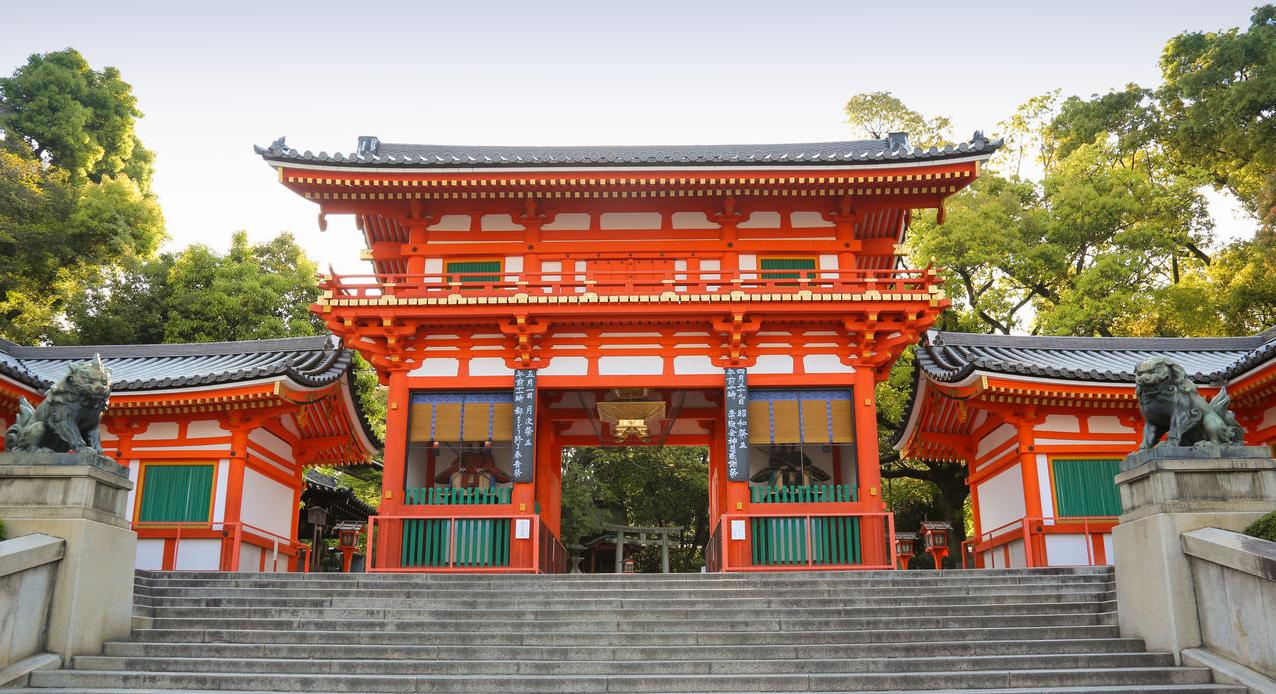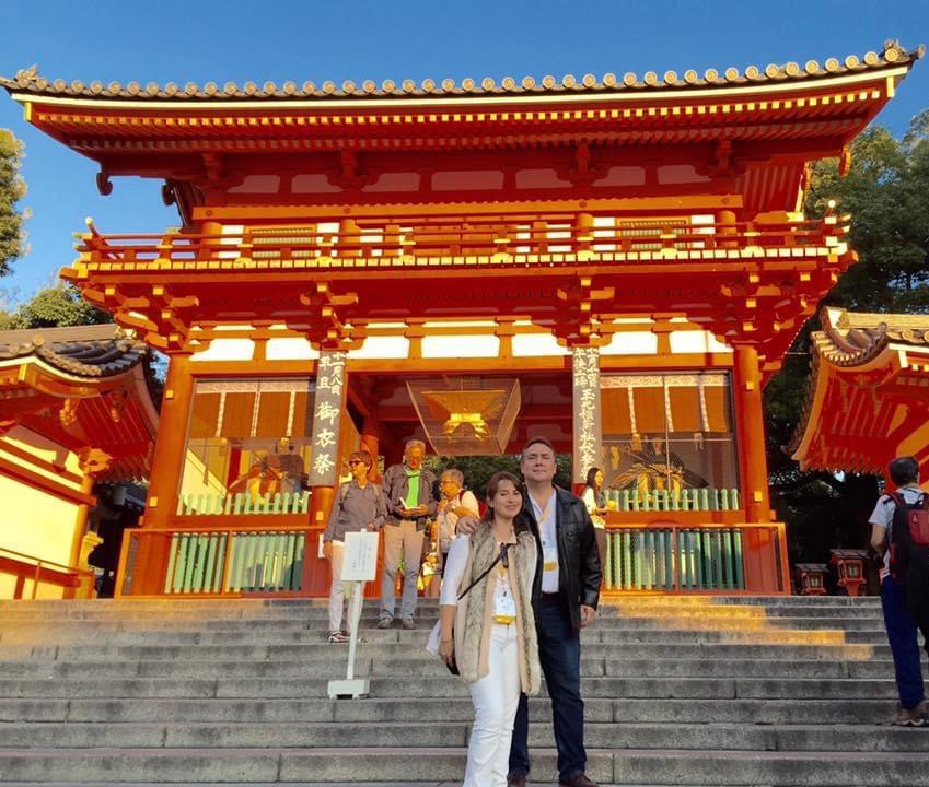 Inmediatamente nos dirigimos con destino a uno de los tesoros nacionales del Japón, un Santuario sintoísta del siglo VII, situado al final de la calle Shijó-dori, cuarta avenida, del distrito Gion, el Santuario Yasaka , que significa “Ocho Puños”, uno de los sitios religiosos mas venerados de Kyoto, que constituye una visitá casi obligatoria cuando se está de paso por la antigua ciudad. Cuenta la leyenda que el Santuario se construyó sobre un lago subterráneo para lograr que el Dios del este, el dragón de aguas azules, recibiera agua para así asegurar el bienestar de la Región. En el año 869 el Santuario dio origen al festival mas importante de la ciudad el “Gion Matsuri”, que sigue celebrándose cada año por las calles del centro de Kyoto.