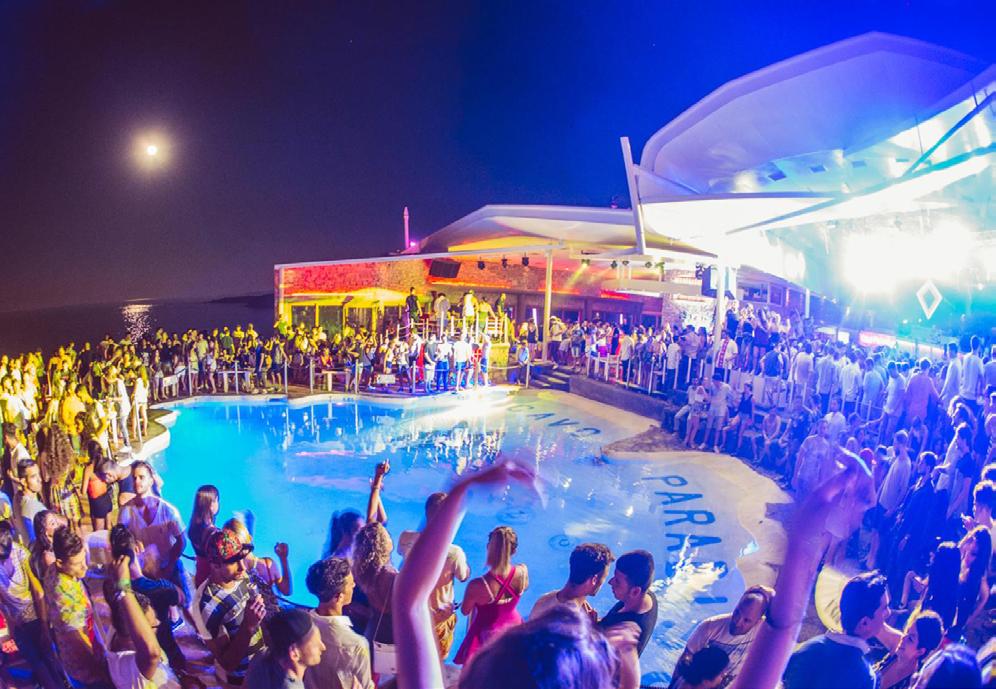 famosas por sus discotecas y fiestas que funcionan las 24 horas, los 7 días de la semana. Paradise Beach y Super Paradise Beach se encuentran en la costa suroeste de Mykonos, a unos 6 kilómetros de la ciudad principal. Se puede acceder fácilmente a estos lugares en autobús, transporte privado y taxi; Hay servicios de taxi desde algunos lugares como Ormos y Platis Gialos.