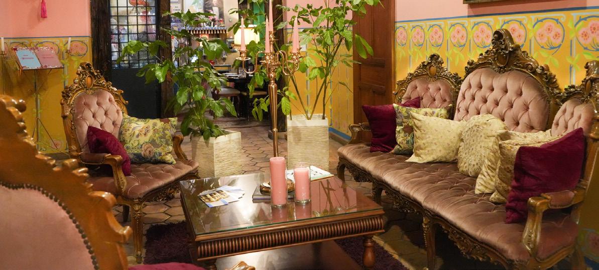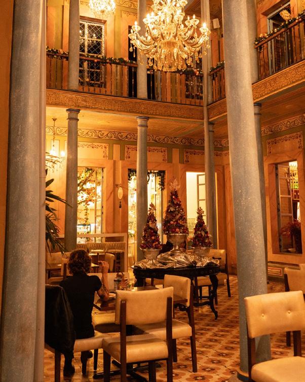 Recorrer sus instalaciones es trasladarse a un mundo principesco, sus bellas y originales lámparas, decoraciones, sus amplias paredes tapizadas con papel tapiz importado de Francia, sus obras de arte, sus vajillas de cristal y porcelana, sus muebles de principio de siglo y cientos de originales y únicos adornos en sus amplios y románticos salones, le dan el confort al visitante que disfruta de una variada gama de selectivos restaurantes nacionales e internacionales, cafeterías, bares, heladerías, pastelerías y sobre todo con atención personalizada en salones múltiples o familiares privados desde donde puedes apreciar la belleza del centro cuencano.
