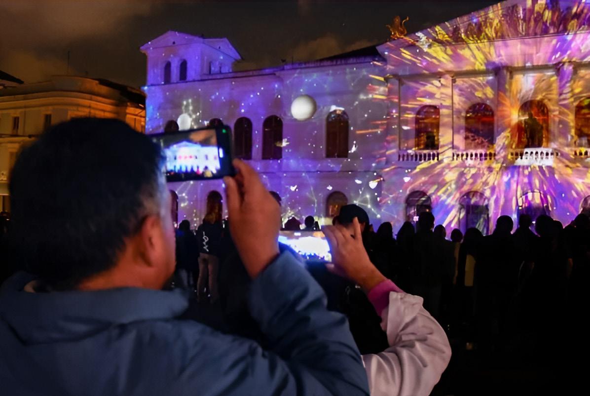El Festival de Mapping Quito, Luz de América, realizado del 8 al 10 de agosto en el Centro Histórico, congregó a 365 mil asistentes en sus tres jornadas, alcanzando un impacto económico de USD 2,8 millones, lo que equivale a un incremento del 54,2% respecto a 2024.