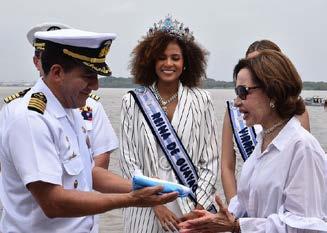 Gloria Gallardo Presidenta Empresa Pública Municipal de Turismo Promoción Cívica y Relaciones Internacionales EP. recibe de manos de la Armada Nacional la Bandera de Guayaquil.