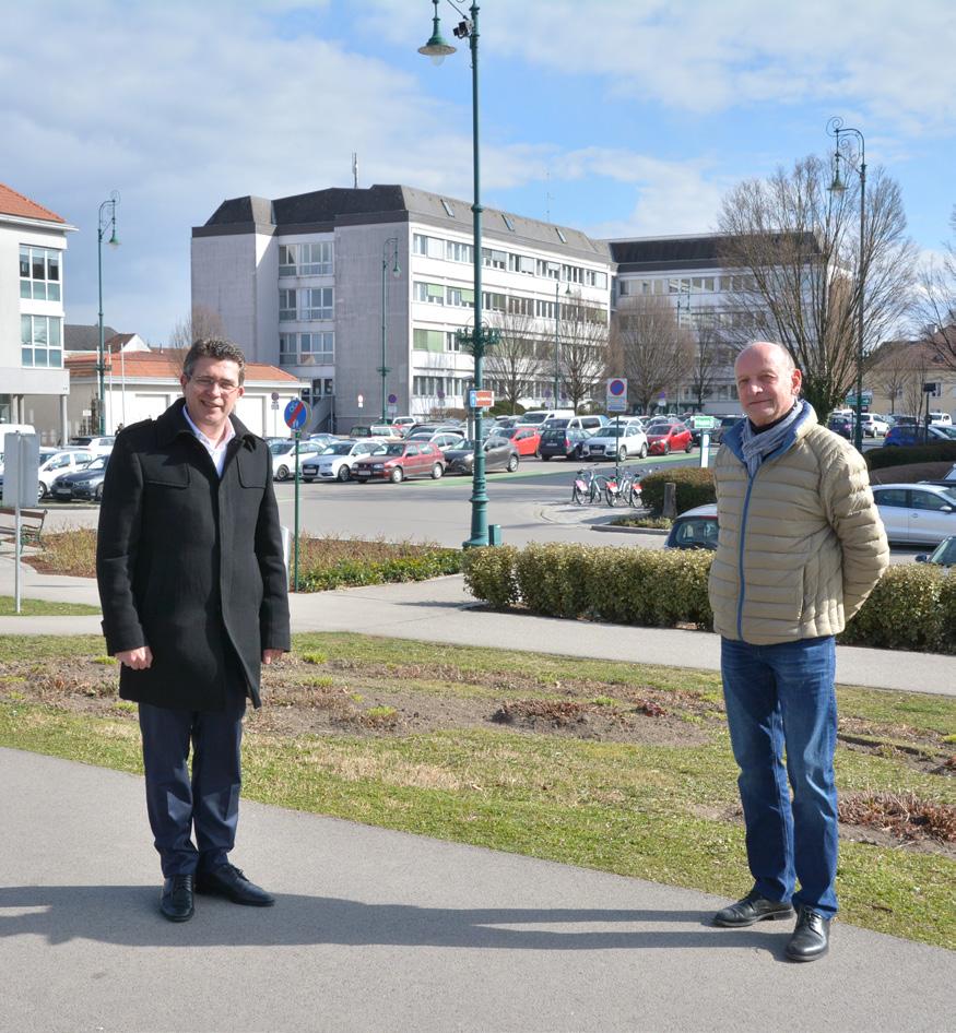 Bürgermeister Mag. Peter Eisenschenk mit Franz Redl, Obmann der LEADER-Region Donau NÖ-Mitte, am Nibelungenplatz