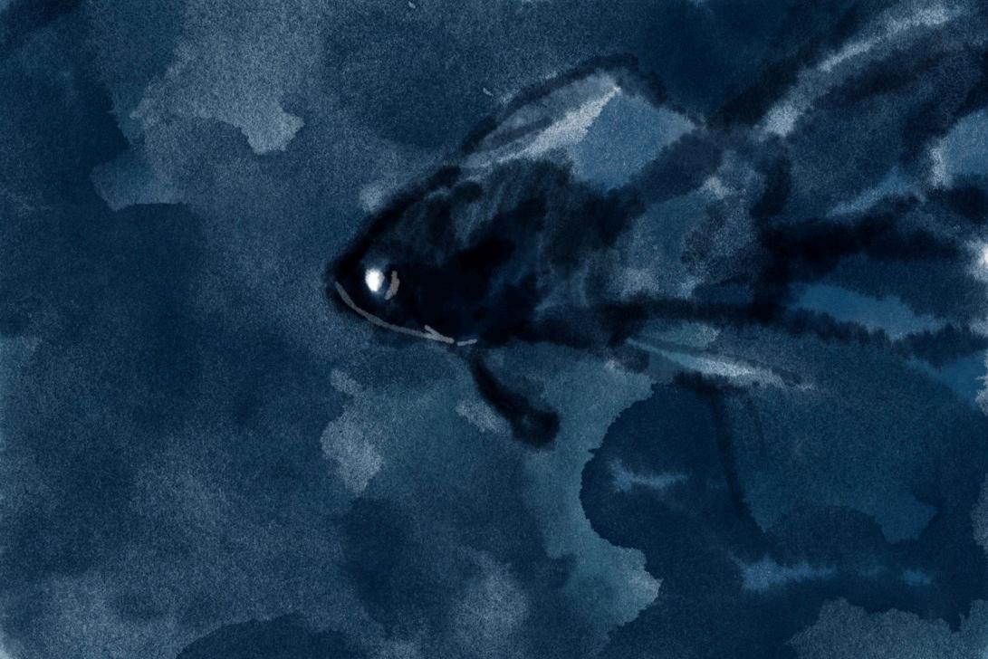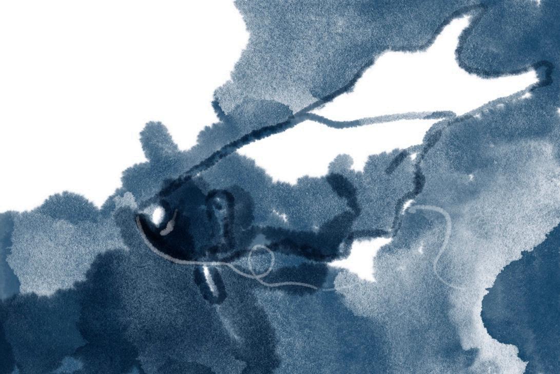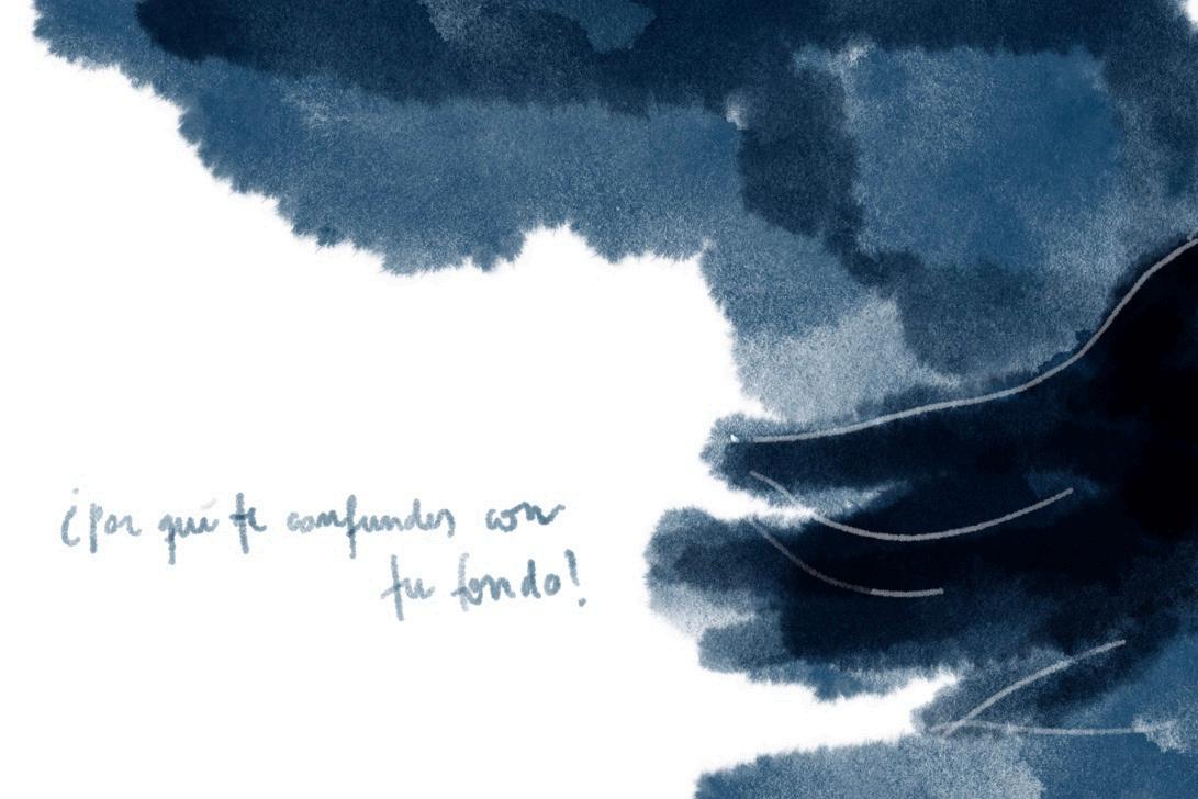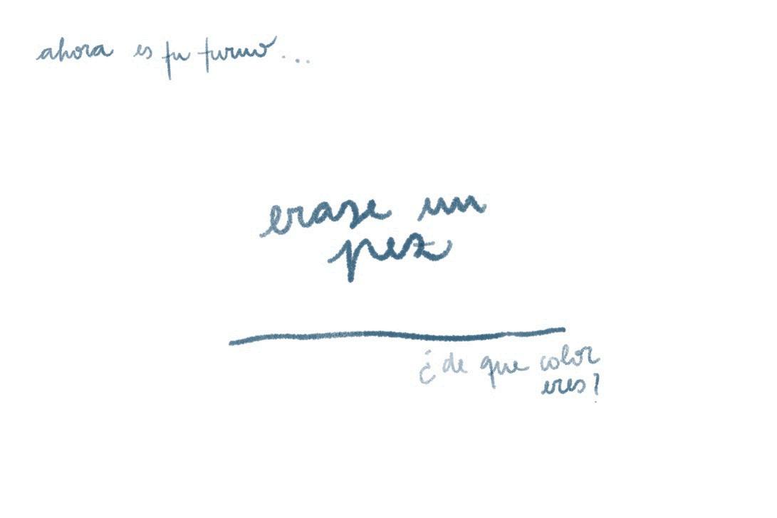 "...once, a blue fish" it's a silent book in which the trace and te blue spots moves in the pages where suddendly the reader realizes is a fish. The presence of the fish symbolizes an essential part of the boy's identity, something hidden at first glance but profoundly defining who he is.