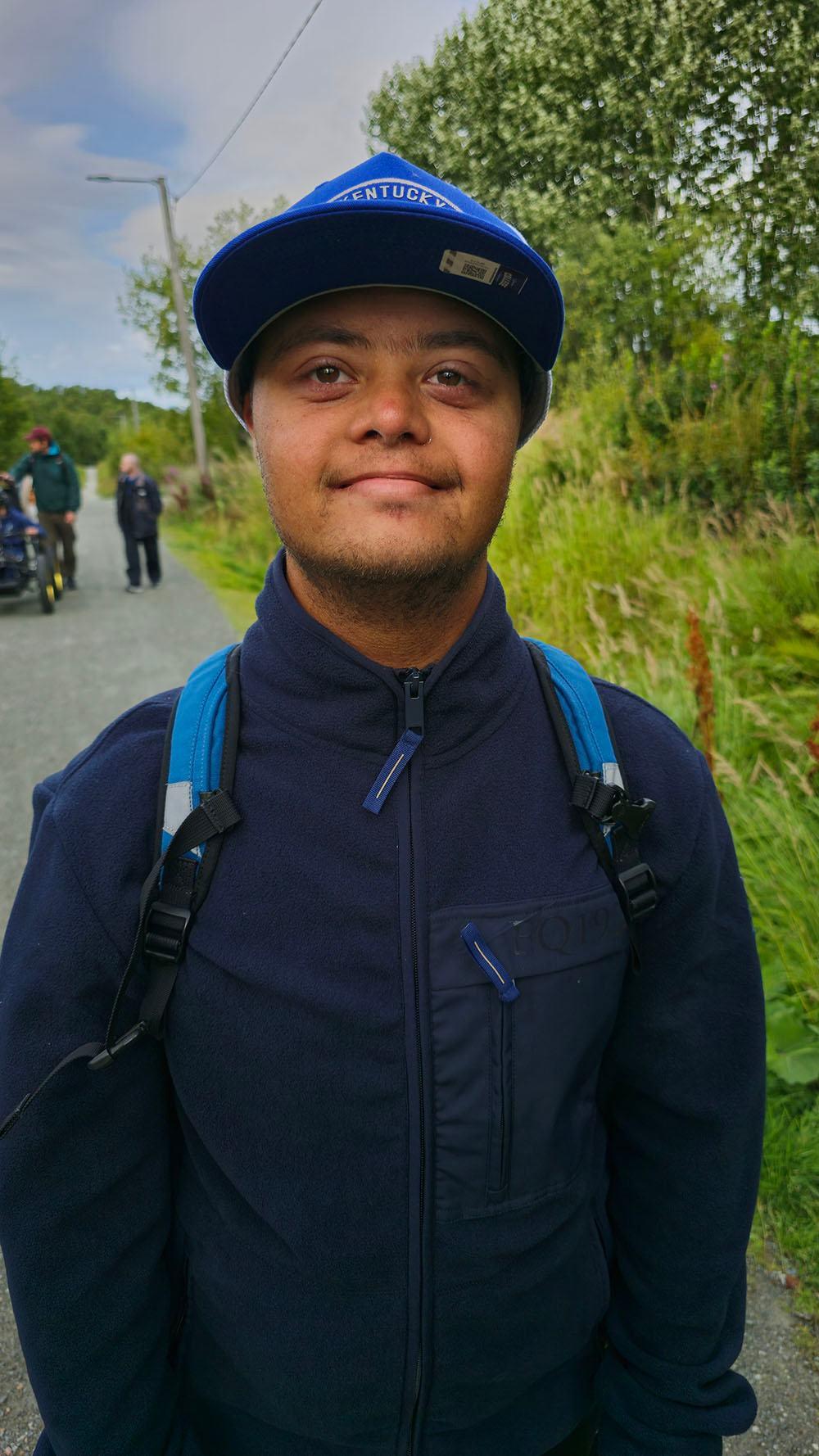 Thomas synes ikke det var langt å gå, selv om vi måtte gå en liten omvei ettersom det var bom på vegen vi startet på.