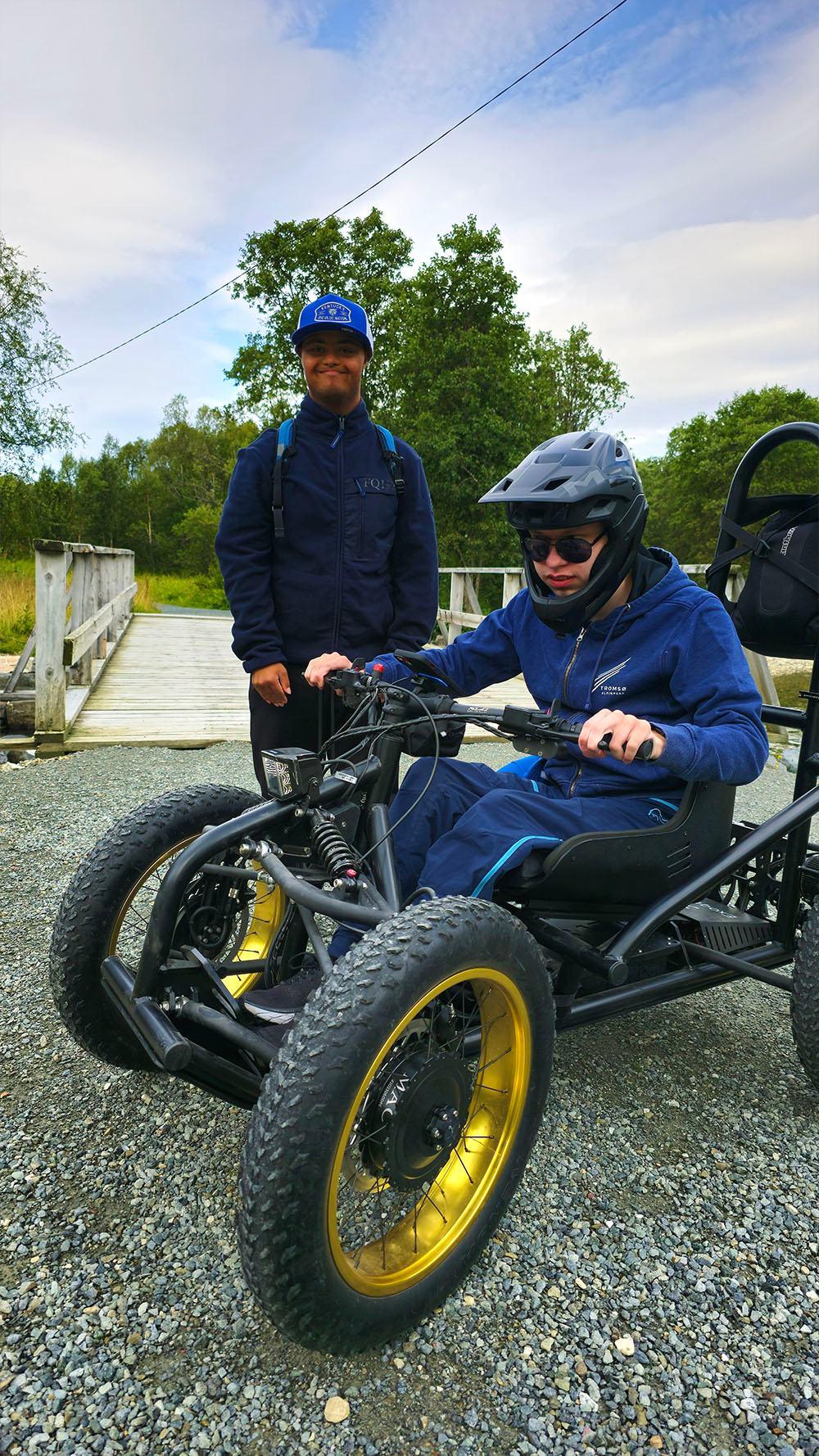 Kine og Sivert klar for å kjøre ATV hos Dreis.
