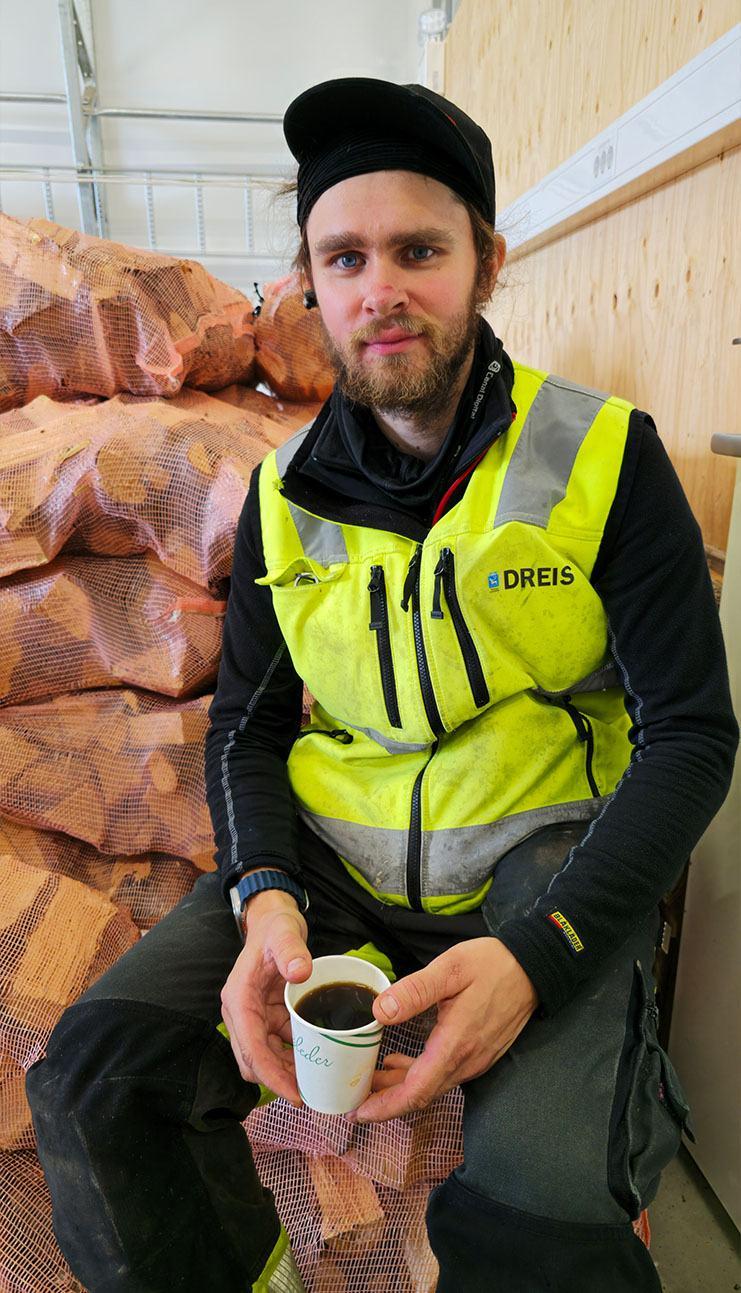 Kristian jobber blant annet med vedproduksjon hos Dreis.