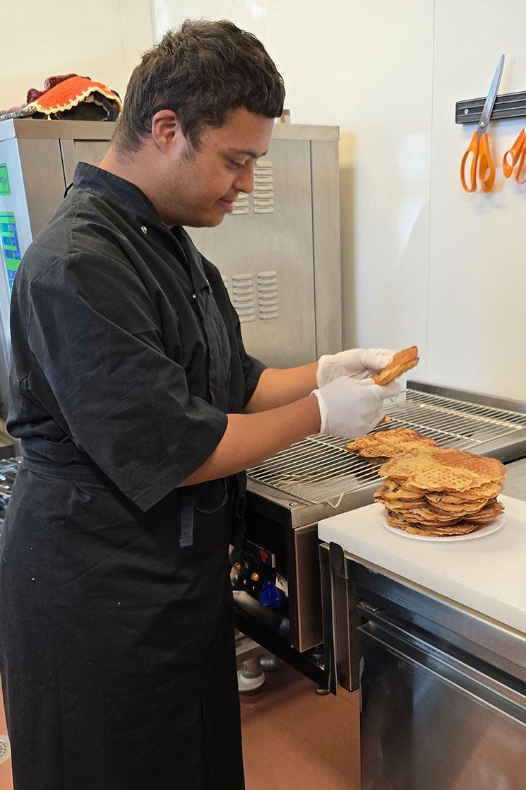 Mathias lager vafler.