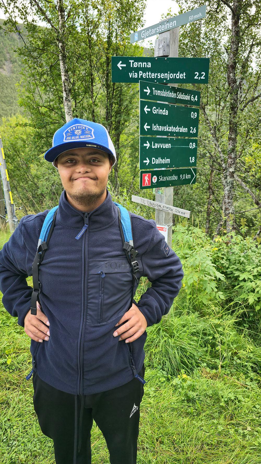 Mathias foran turskiltet som viste veien inn mot Gutta på skauen ved Gjetarsteinen.