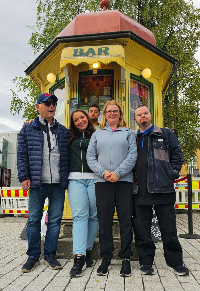 Per Oskar, Marlene, Mathias, Kine og Marius foran Rakettkiosken, tidligere Løkkekiosken.