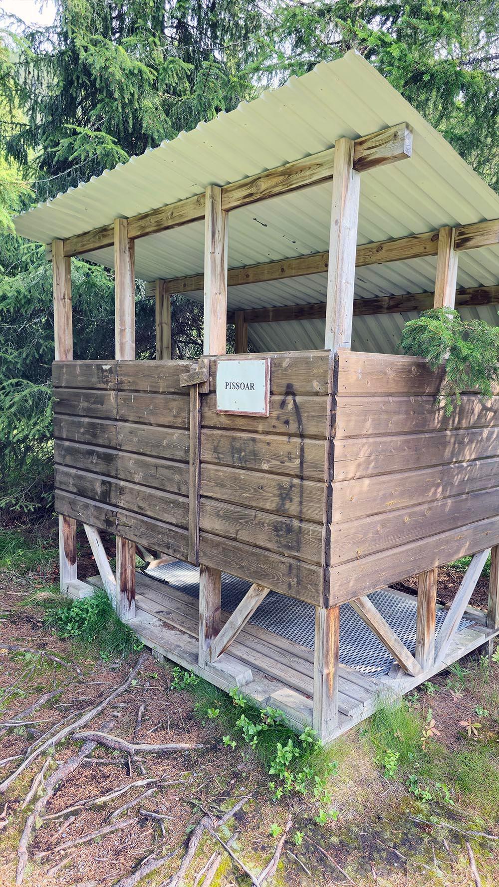 I tillegg et stort antall benker, gapahuker, og bålplasser er det gode toalett-fasiliteter, og til og med et eget bygg med pissoar. :)
