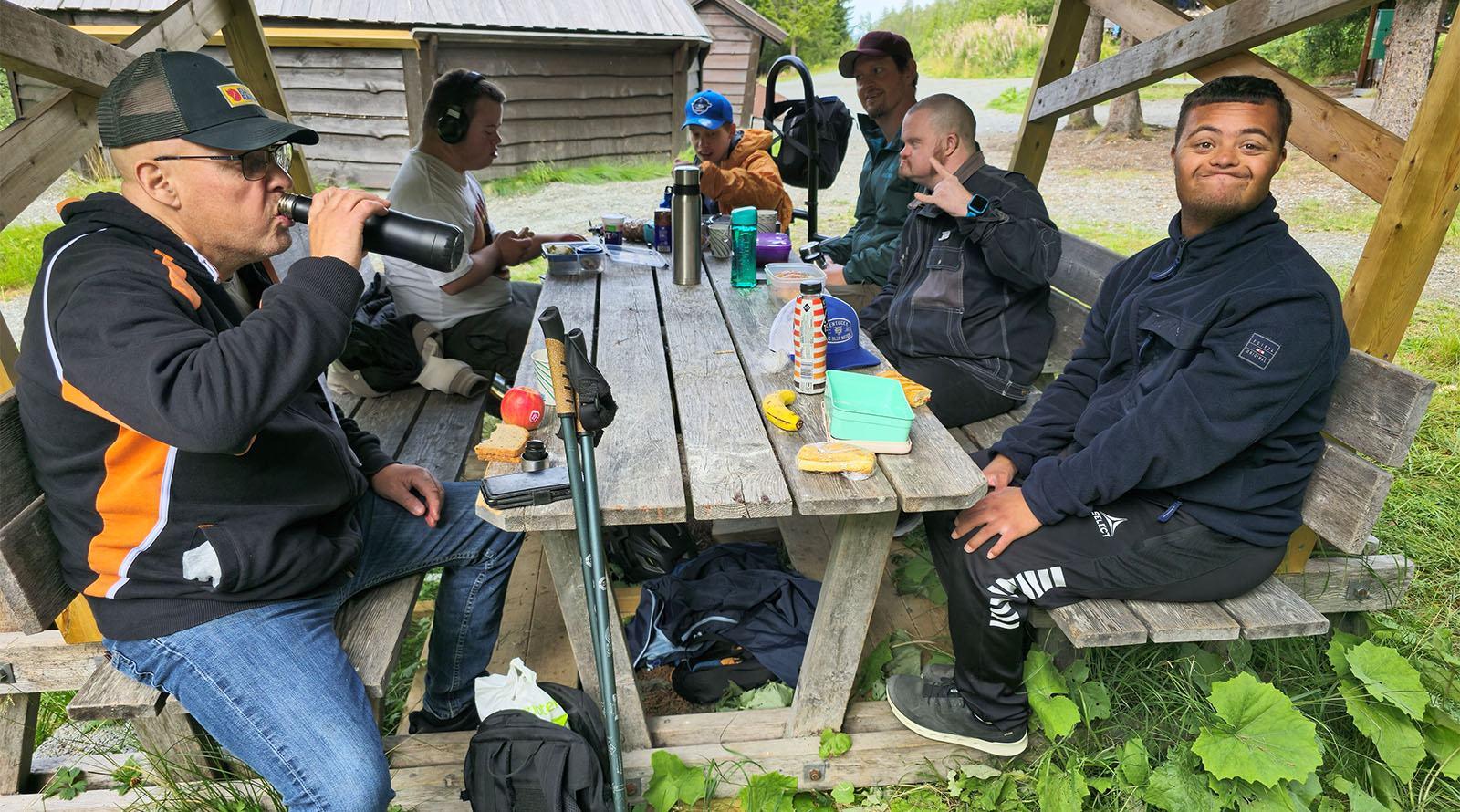 Noen av gjengen hos Dreis f.v Sivert, Jonas, Gunnar, Kine, William, Kristian og Sarah.