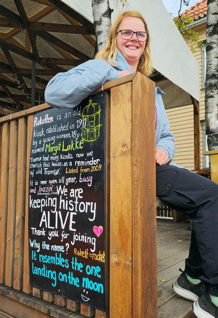 Siri Therese Lier møter oss med et smil i det vi ankommer Rakettkiosken - et svært kjent landemerke på Stortorget i Tromsø sentrum.