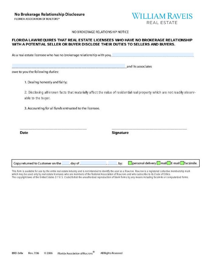 No Brokerage Relationship Disclosure (FAR 7/6/2006)