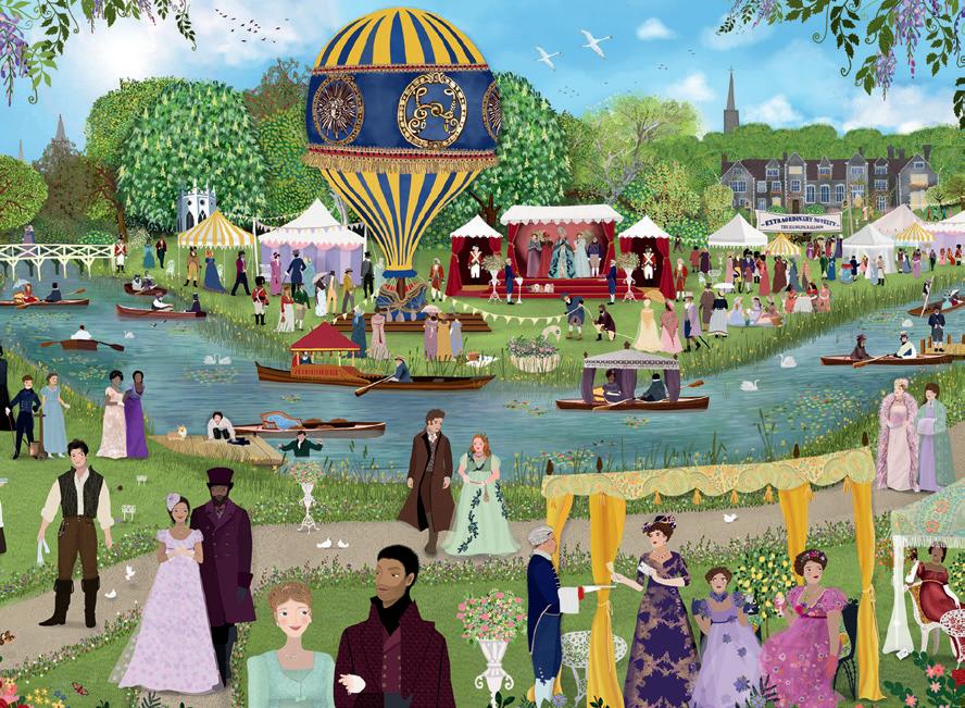 Artist Angela Holland created the wonderful image for our cover puzzle, the Bridgerton 1000-piece. This warm, contemporary take on the hit Netflix series will appeal to anyone who loves the Regency style with its depiction of a summer’s afternoon by the river. The puzzle features many favourite characters from the show, as well as some characters yet to be featured. With a background of studying both fashion and textiles and Theatre Design, this project was a dream come true for Nottingham-based Angela.