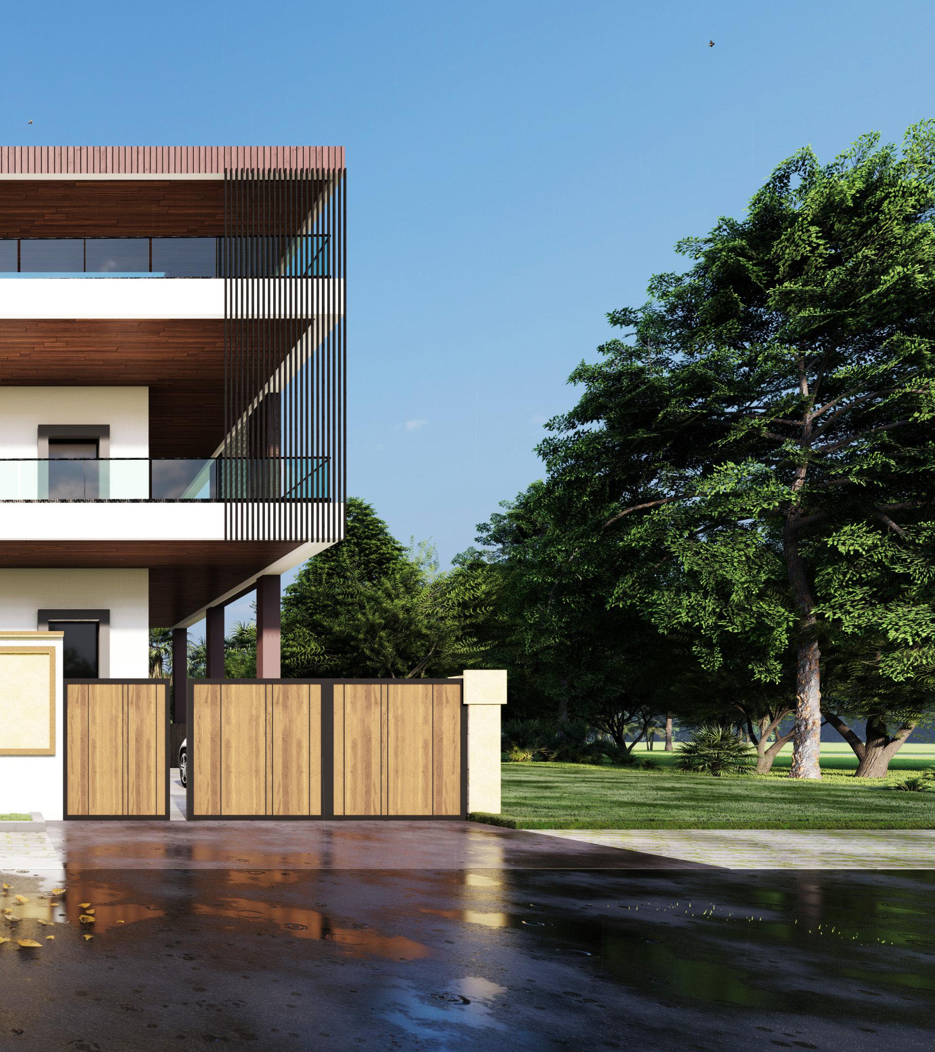 Its a standalone villa for a family. It has variety of spaces for different functions all over the villa, also it has a basment which is designed for recreational activities as requested by client. This project intented to have interiors in combination of three colors, the doors and windows are kept in dark wood colors, the furniture in light wood colors and the wall and flooring in light beige texture.