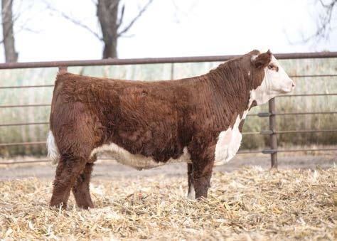 About as much pigment as you can put on a Hereford here! Calving ease Land Grant son that is really smooth and attractive. Top 3% SC and BMI, 4% BW and 5% CE.
