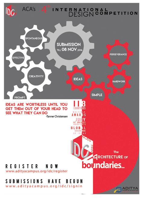 r e g i s t e r n o w EVENT CO-ORDINATOR: AR. TRIPT B SWAS +91 99308 70005 FOR DETAILS CONTACT: aR. SANKETA PATEL +91 98333 00496 EMAIL: adityacampus.argyha@gmail.com L A ST D AT E FOR REGISTRATIONS: 5 TH DECEMBER 2016 C o - Pa r t n er C o - Pa r t n er Str a te g i c Pa r tne r ORGANIZED BY OUR PARTNERS C r e a ti v e Pa r tn e r Sil v e r Pa r tne r BUILDING MATERIAL EXPO JOIN US FOR FUN FOOD & FROLIC ON 16TH - 18TH DECEMBER 2016 EKTA MUNCIPAL GROUND, R.M.BHATTAD RD, RAM NAGAR, OPP. ADITYA EDUCATIONAL CAMPUS, BORIVALI (W) 10 AM - 10 PM 20,000+ ARCHITECTS & PROFESSIONALS 25,000+ CITIZENS STUDENTS COMMUNITY I N A U G U R A L function of arghya 1.TRIBAL WARLI ARt 2.CALLIGRAPHY 3.tie and dye 4.RANGOLI ENTERTAINMENT PROGRAM BY STUDENTS OF ADITYA GROUP OF INSTITUTIONS (UPTILL 5:30PM) cultural PROGRAM 10:00 AM to 12:00 PM 2:00 pM to 4:00 PM 4:30 pM to 6:30 PM 7:00 pM to 1o:00 PM WORKSHOP WORKSHOP WORKSHOP 16TH DECEMBER 2016 17TH DECEMBER 2016 18TH DECEMBER 2016 1.CLAY WORKSHOP 2. ABSTRACT PAINTING 3. GEOMETRIC PATTERN 2D TO 3D 4.CARTOONING intercollegiate Dance competition MUSICAL NIGHT Talent competition FOR senior citizen ABOVE 60 YRS ENTRYFREE PHotography competition: Entries welcomed for PHOTOGRAPHY COMPETITIONS 1.GOND & MADHUBANI PAINTINGS 2.TERRACOTTA & METAL WIRE 3.MAGIC OF MUSIC & PATTERNS FOLK DANCE competition OPEN TO ALL COOKING COMPETITION for men & women VALEDICTORY FUNCTION AWARD CEREMONY FUNcTION & FELICITATION OF LOCAL CITIZENS / ACHIEVERS drawing competition for children below 12