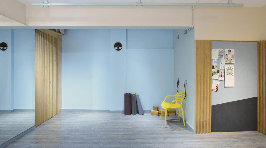 Design and renovation of a dilapidated space yielding a simple, functional and calming environment in three tone paint scheme and clean millwork details. A tight budgetary constraint and limited room for changes forced us to conserve and rethink existing elements within space. The result is a calming yet inspiring studio space dedicated to prebirthing and fitness activities.