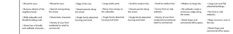 Mix is in reference to the wide range of parcel sizes, land uses, and building types in the center of the corridor.