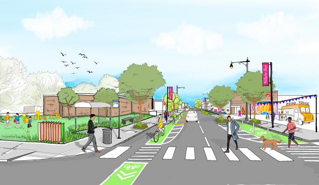 Prioritize pedestrian and bikers safety through protected bike lanes, proper street lighting and active storefronts