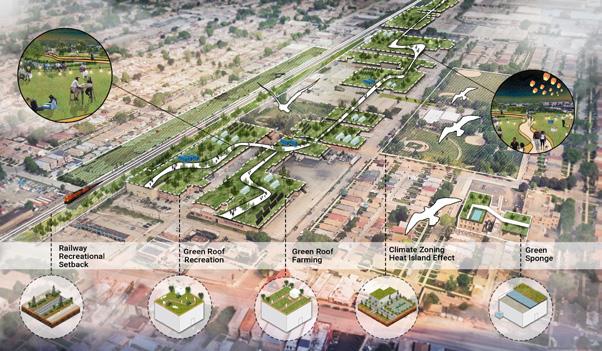 Re-imagined infrastrucure connections along abandoned and exisitng railway corridors and utility lines.