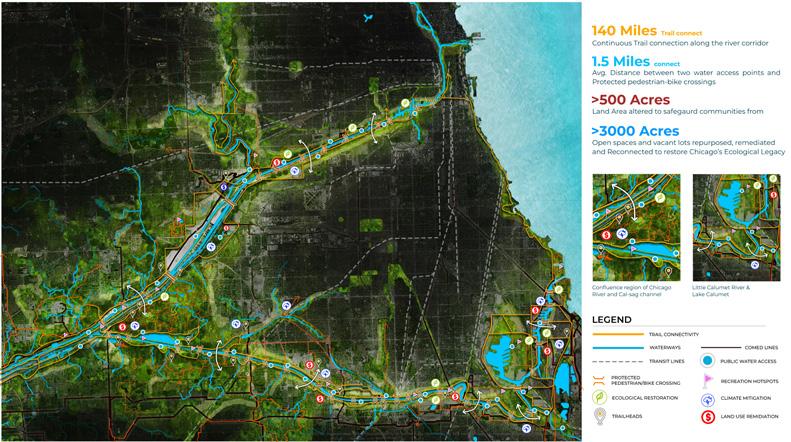 The legacy of the Great Lakes Region is one of ecological abundance which has been challenged and disrupted by industrial and urban primacy. Fragmented natural systems need to be restitched to restore Chicago region’s legacy of rich natural systems, promote coexistence between humans and nature, and catalyze Chicago’s New Nature - an ecology that responds to historical degradation and is innovatively positioned for urban use and resilient climate adaptation - through design, planning, and governance.