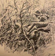 The famous pig-sticking contest was first held in India in 1869 (this date is derived from a list of winners in the Club’s possession – giving the first winner as a Lieutenant Bibby, 4th Hussars, riding a horse called The Doctor). In 1873, Mr W A Forbes of the Indian Civil Service presented a cup to the winners of the competition, which was run after pig, first spears to count. (David’s article notes ‘it was first run for in 1874 and was won by Lieutenant White, 15th Husssars’ – and having done further research I have found an article that states that ‘previous to that date (1874) it had been merely a point to point race over a pig-sticking country and called the Forbes Cup in honour of the founder and President of the Meerut Tent Club. In 1870, the name of the cup was changed to the ‘Forbes Kadir Cup’ and the competitors had to ride with spears in their hands... in 1874 the conditions of the cup competition were changed, it became the ‘Kadir Cup, and was run after pig, with the long spear.)