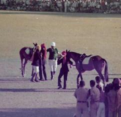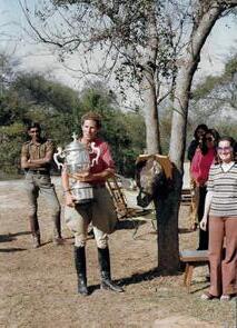 The contestants were divided by lot into parties of not more than four and rode to spear in heats, continuing until the winner emerged from the final run. Each competitor could enter two horses, and the cup was won by the horse, not the rider. (From the 1979 article – “for the competition, all the spears (about 60 including visitors) were divided into heats of about seven each. There were also between 20 and 30 umpires, spectators and soldiers who acted as horsecatchers or ‘pickers-up’. They were mounted, some on horses, some on an elephant and a few more in jeeps…… When a pig gets up, the heat which sees it first, hunts it, and the man who gets first spear wins the heat. The first spear on the largest pig is the overall winner, and a boar always takes precedence over a sow.)