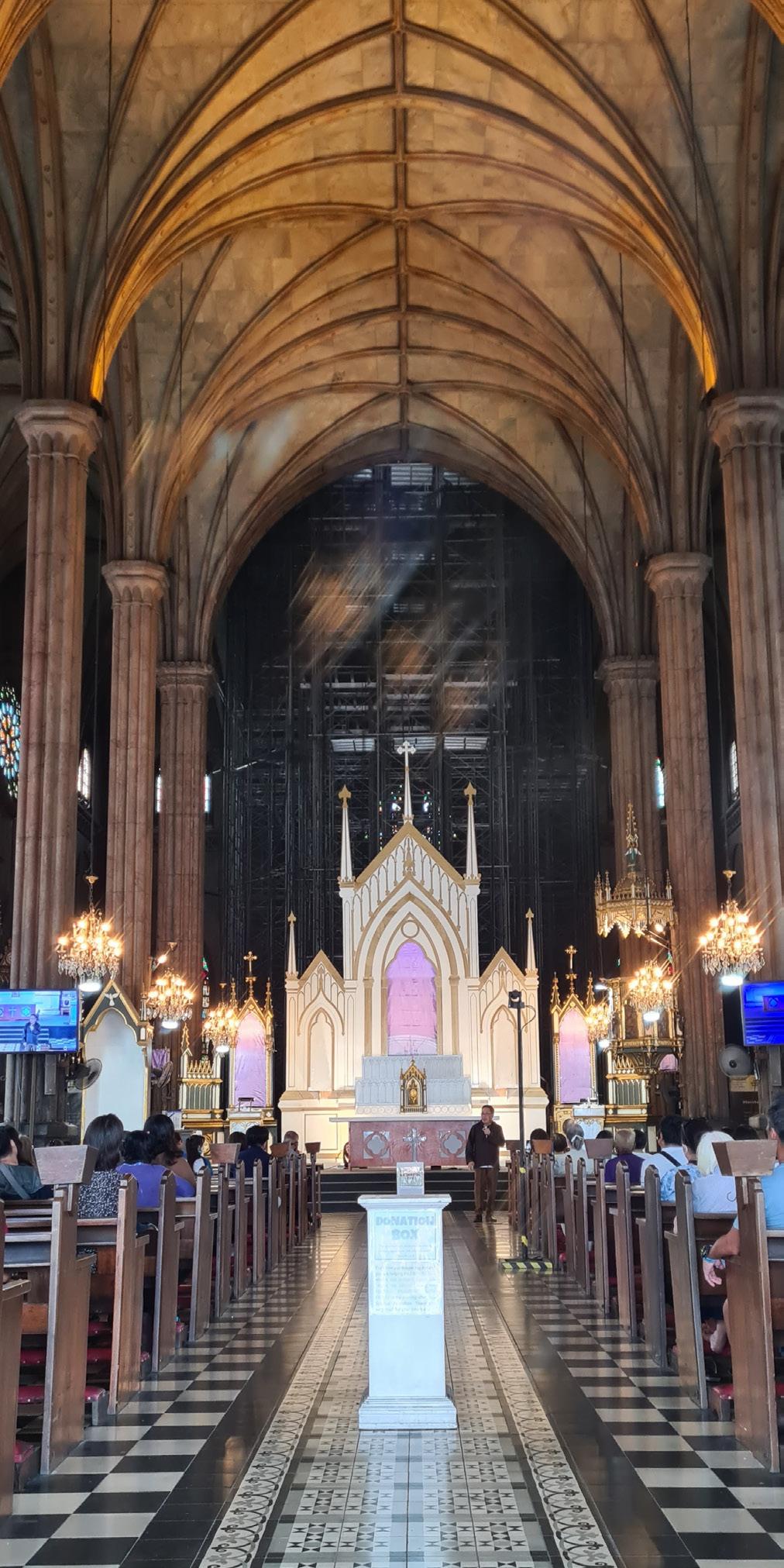 The bell tower is an octagonal pagoda to indicate the presence of the Chinese parishioners. The main altar is a miniature of the facade of the St. Peter’s Basilica in Rome.