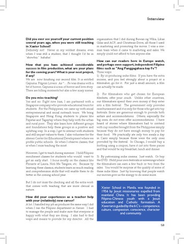 A lot. I handled my job as producer the same way I did when I ran the Filipino department in Xavier. I had to manage the people and make sure that everyone is happy with what they are doing. I also had to find ways and means to provide for my director. All the