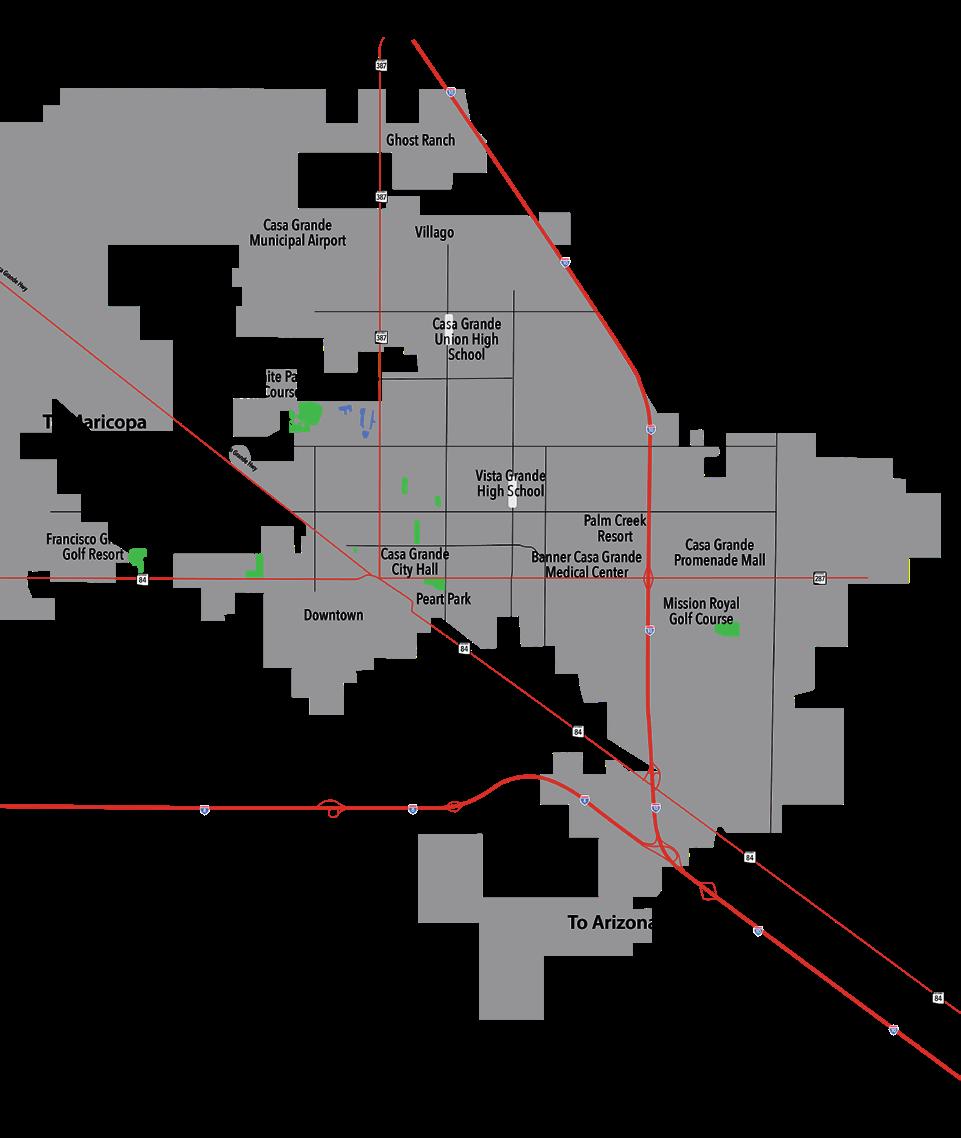 Casa Grande’s population, employment base and future prospects are expanding into a nearly limitless future. Its people and the sun exude yearround warmth, and the quality of life is stellar with multiple golf courses, parks and trails, a cuttingedge recreational center and a plethora of stores and nearby attractions.